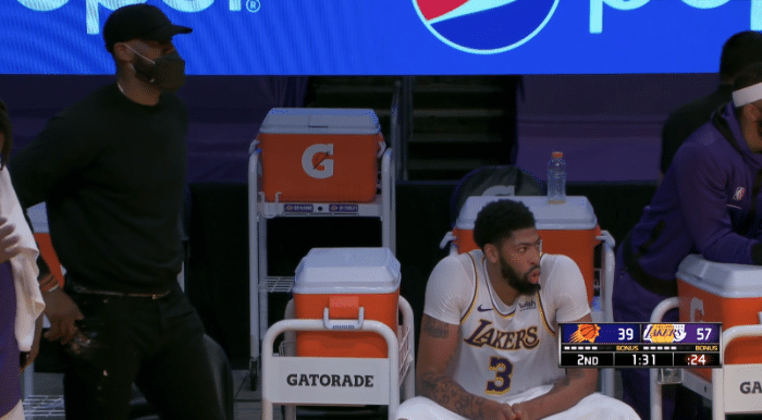 赛季最后一次对决,詹姆斯、施罗德和库兹马都缺席比赛,浓眉苦战41分轰下42分12篮板5助攻3盖帽3抢断,攻防一体带队拿下胜利,湖人主场球迷为浓眉高呼MVP;常规赛对阵太阳1胜2负拒绝被横扫;赢球后湖人38胜30负继续排在西部第七,落后西部第六的开拓者1个胜场,在常规赛还剩下4场的情况,湖人继续冲击西部第六。