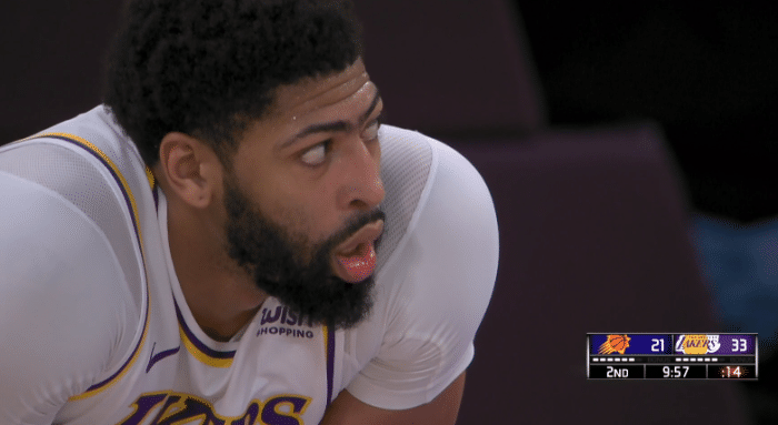值得一提都是浓眉把球鞋都拼掉了,第二节8分多钟,浓眉鞋子掉了,他第一时间把球鞋扔到场外,赤脚回防,然后浓眉示意沃帅喊暂停,趁着暂停浓眉重新穿上球鞋。
