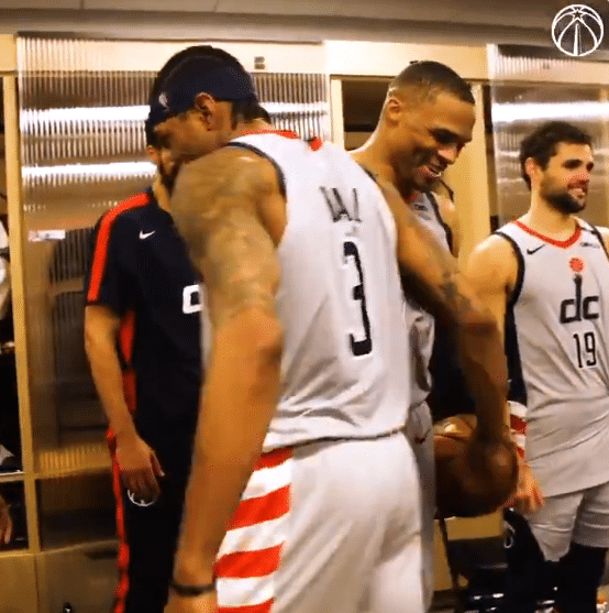 JRS直播网讯 北京时间5月9日,奇才加时险胜步行者,比尔带伤轰下50分,因脚伤伤势提前退赛,韦少狂砍33分19篮板15助攻大号三双,加时赛关键时刻,终场前1秒罚球准绝杀,然后死亡封盖终结比赛;赢球后韦少抱球疯狂庆祝,赛后比尔疯狂庆祝,奇才更衣室庆祝画面也曝光了。