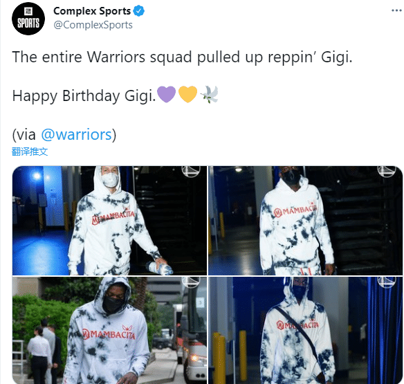 除了库里,德拉蒙德-格林、维金斯等勇士球员都穿着纪念Gigi的运动装出镜,以此表达对科比二女儿的情感,也是帮助瓦妮莎推广这款纪念服;美媒Complex Sports发推写道:勇士全队都穿着Gigi纪念服来到球馆,生日快乐,Gigi!