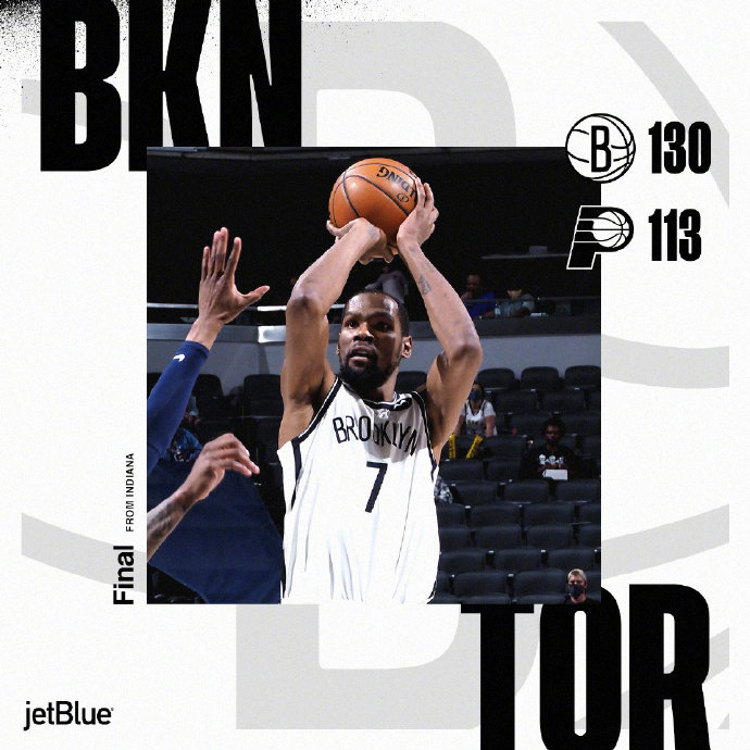 篮网130-113战胜步行者 杜兰特42+10 A-约翰逊20+21 勒韦尔36+5