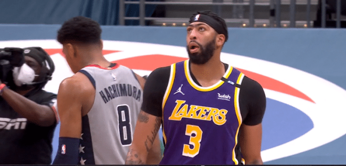 比赛正式开打后,浓眉内线大帽八村塁,然后反击中暴扣虐框,湖人首节靠双塔和奇才拉锯,不过到了第二节,湖人进攻明显下滑,奇才开始掌握主动权;下半场湖人一直被压制,最多一度落后19分。