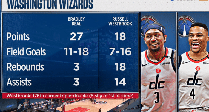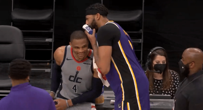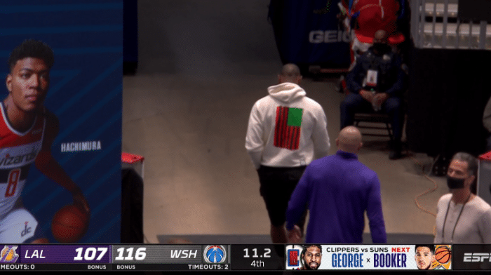 虽然浓眉末节轰下14分带队反扑,但韦少三分、强硬突破给出回应,坐在地板上握拳怒吼庆祝,由于输赢早早失去悬念,湖人换下主力,放弃比赛,最终107-116又输给奇才。