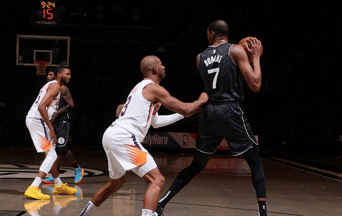 JRS直播网讯 今天NBA常规赛太阳很遗憾的以119-128输给篮网,这样他们放缓了冲击西部第一的脚步。这场比赛保罗砍下14分4篮板8助攻的全面数据,可惜依旧不敌杜兰特复出的篮网,不过他们依旧稳居战绩榜西部第二的位置,领先第七名的开拓者有多达10个胜差,在还剩下12场比赛的情况下,太阳晋级季后赛已经只是时间问题了,本赛季太阳的表现确实非常出色。