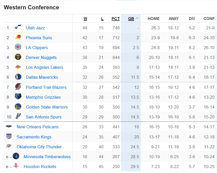 开拓者128比130惜败灰熊,两队激战到最后时刻,莫兰特发挥出色,全场拿到33分13次助攻,第四节最后时刻也有稳定发挥。布鲁克斯25分,贾伦杰克逊也拿到23分。利拉德27分,迈克勒姆22分,努尔基奇拿到26分17个篮板,三个人得分20+还是无法赢球。开拓者输球后跌出前6,被独行侠反超,按照规则,第7名是要参加附加赛的比赛。快船109比104击败火箭,乔治带队在第四节完成了逆转,乔治拿到33分14个篮板,在莱昂纳德缺阵的情况下取得4连胜,火箭继续垫底,奥利尼克23分、伍德24分19板、沃尔27分13次助攻。