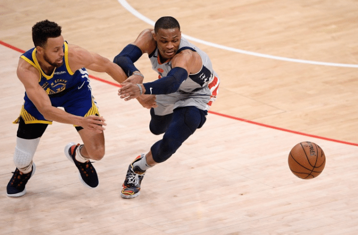 JRS直播网讯 最近一场比赛,奇才118-114击败勇士,和两队上一次相遇一样,勇士打到第四节中段还占据领先优势,然而最后5分钟崩盘!诚然,这里面有维金斯上篮不中的因素,而库里的表现却难得一见的低迷,全场25中7,其中三分球14中2,只拿到18分7篮板8助攻,此外还有6次失误!进入4月份以来,库里场均40分,但唯独遇到奇才不好使,赛后,奇才主教练布鲁克斯和核心比尔都谈到了一个关键问题:威少在防守端的表现,居功至伟!