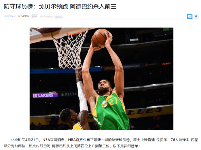 JRS直播网讯 在很多篮球迷来看,防守可能是他们最不习惯的一项工作,因为相比起成就感满满的进攻得分,防守只能算是一项脏活累活。但在NBA这种职业联盟中,防守有时候会产生巨大的作用,而NBA官方也为此专门设立了最佳防守球员的奖项。近日NBA官方网站又一次更新了最新一期最佳防守球员榜单,虽然这份榜单上的球员没什么变化,但我们仍然可以从中看出这个奖项的有可能获得者到底是谁。