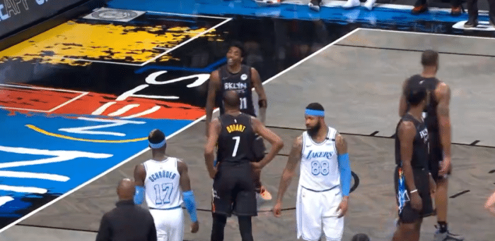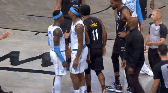 JRS直播网讯湖人和篮网比赛中,施罗德和欧文互喷垃圾话双双遭驱逐离场,施罗德出战20分钟11投7中轰下19分4助攻,在场正负值+16,欧文11投6中拿到18分4篮板,湖人和篮网主力都被驱逐引热议。