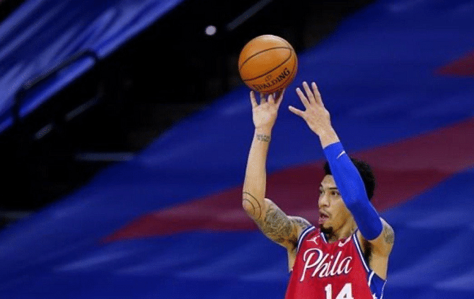 本赛季场均出手三分球6.3次,命中率41.5%,这样的效率是非常高的,而上个赛季,丹尼格林在湖人效率时期是,三分球命中率是36.7%,现在来到费城之后,很明显丹尼格林的三分球准星更足了,他的三分球也很好的帮助球队。