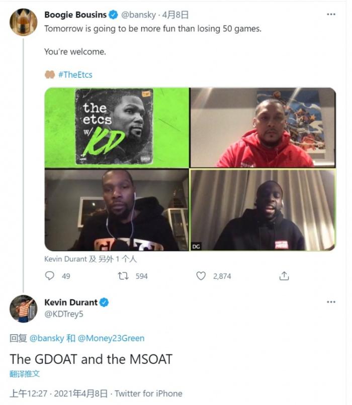 近日他与昔日队友追梦格林录制了播客节目《Boardroom》,而就在刚刚他转发了相关的推特并写道:“史上最佳防守球员(GDOAT,Great Defence Of All Time)和史上最软球员(MSOAT,Most Soft Of All Time)。”