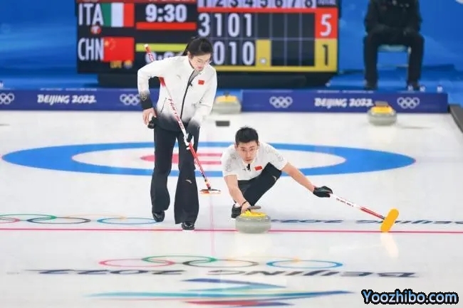 全场比赛结束,中国4-8不敌意大利,遭遇6连败,在还剩一场比赛要打的情况下,总战绩2胜6负,仅排名循环赛的第9位,已确定无缘四强。比赛开打,中国队手持黄壶,意大利队手持红壶。第一局,中国队后手投掷,然而,意大利两名选手发挥太过出色,一上来就让中国组合陷入被动。最终,在经过一番争夺后,意大利队竟然先手偷走3分,第一局就3-0领先。