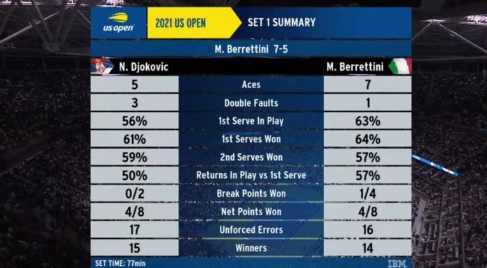 本届美网赛事,德约的晋级之路并不平坦,此前的2轮比赛他都是先输一盘,随后连追三盘完成逆转。但这场比赛,他迎来了本届赛事的最强对手贝雷蒂尼,后者在此前的温网决赛中不敌德约。