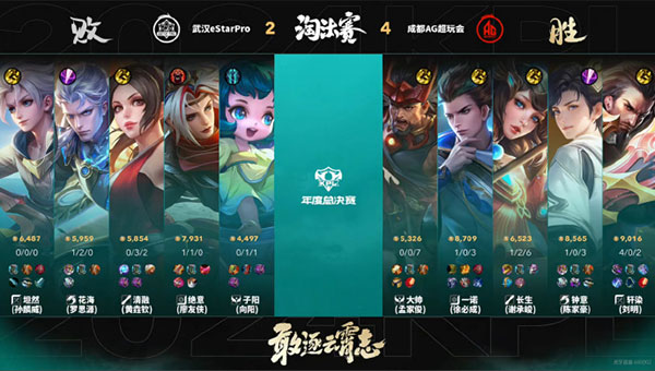 第四局,AG的阵容展现出了极高的灵活性,如同灵动的舞者在战场上翩翩起舞。决胜团中,eStarPro率先发起开团,意图打乱AG的节奏。但AG岂是泛泛之辈?长生的火舞巧妙进场,以一己之力骗出敌方关键技能,为队友创造了绝佳的机会。随后,刘明的关羽如天神下凡,横刀立马冲入敌阵,eStarPro已然无力回天,AG团灭对手,拿到赛点。本局MVP为成都AG丶轩染(刘明),他的关羽成为了AG超玩会破局的关键。