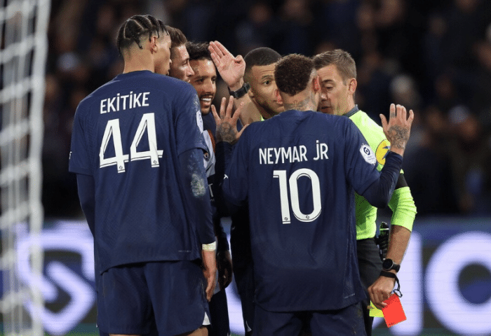 JRS直播网12月29日讯 法甲联赛第16轮,巴黎圣日耳曼主场2-1小胜斯特拉斯堡,梅西仍在阿根廷度假,缺席了本场比赛,内马尔和姆巴佩双核带队出击,两人踢得非常憋屈,遭到了对手的疯狂针对。内马尔在比赛中被侵犯了6次,成功过掉了对手3次,但是裁判有双标的嫌疑,让内马尔心态发生了变化,出现扇对手耳光和跳水假摔,随即被裁判连续出示2张黄牌,被红牌罚下。