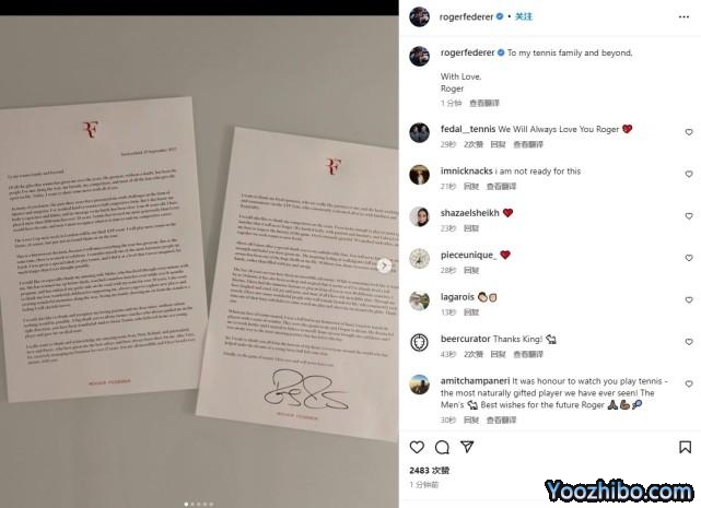 费德勒在社交账号上动情写道:“在这些年网球给我的所有礼物中,最棒的毫无疑问是我一路上所遇到的人:我的朋友、我的竞争对手、以及最重要的球迷,是他们给予了这项运动生命。我已经41岁了,在24年的时间里,我已经打了1500多场比赛。网球对我的慷慨程度超过了我的想象。而现在,我必须认识到什么时候该结束我的竞技生涯了。”