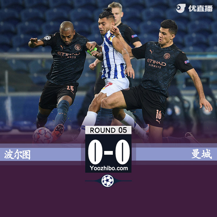 JRS直播网讯:北京时间12月2日04:00(葡萄牙当地时间1日20:00),2020/21赛季欧冠C组第5比赛日一场焦点战在巨龙球场展开争夺,曼城客场0比0战平波尔图,斯特林射丢单刀,迪亚斯错失空门。曼城提前一轮锁定小组头名。