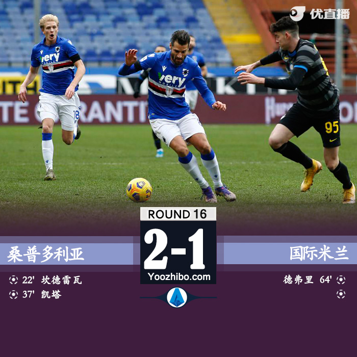 JRS直播网讯:北京时间1月6日22:00,意甲第16轮,国际米兰客场挑战桑普多利亚。上半场桑切斯点球被扑,随后巴雷拉送点,坎德雷瓦主罚率先破门,凯塔-巴尔德扩大比分。下半场德弗赖头球扳回一城。最终,国米1-2桑普,结束联赛八连胜。