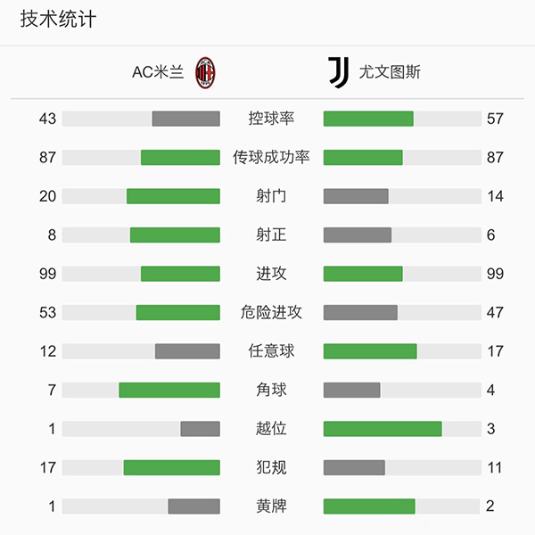 查看:AC米兰vs尤文图斯 全场录像技术统计: