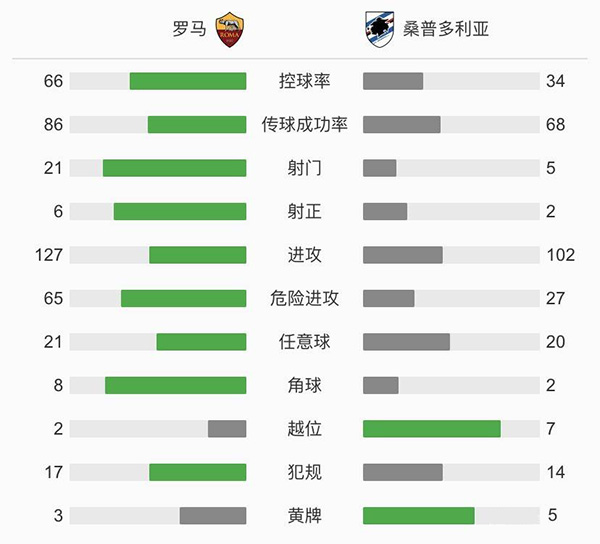 查看:罗马vs桑普多利亚 全场录像技术统计: