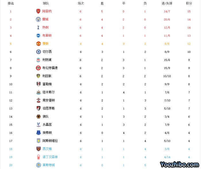 JRS直播网09月05日讯 ,英超第6轮的比赛已经全部结束争夺,本轮曼联主场3-1送阿森纳首败,红魔豪取4连胜。曼城和利物浦都战平没有拿到3分,切尔西绝杀西汉姆联,布莱顿6轮斩获13分成为最大黑马。本赛季的英超可以说大乱斗,阿森纳、热刺、曼城、利物浦、曼联和切尔西,群雄并起,冲击冠军。