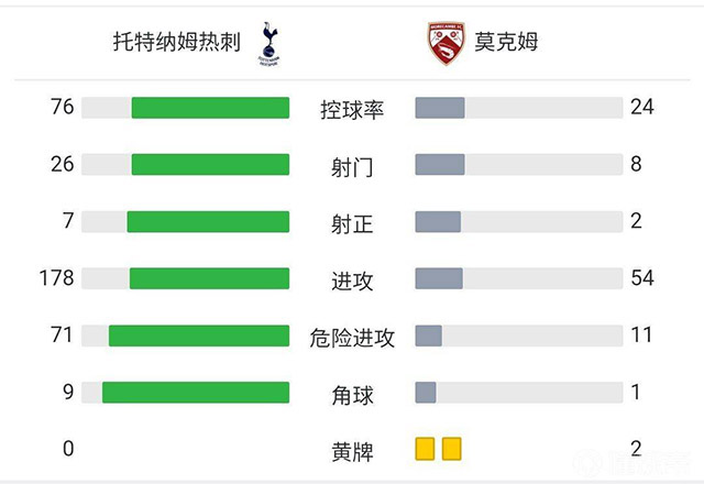 全场比赛结束,热刺3-1莫克姆。